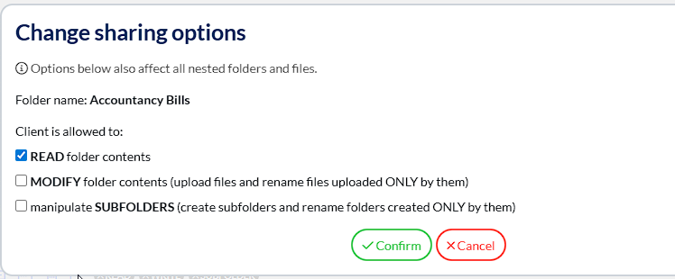 From here you can amend the settings and permissions that you want your client to see / interact with