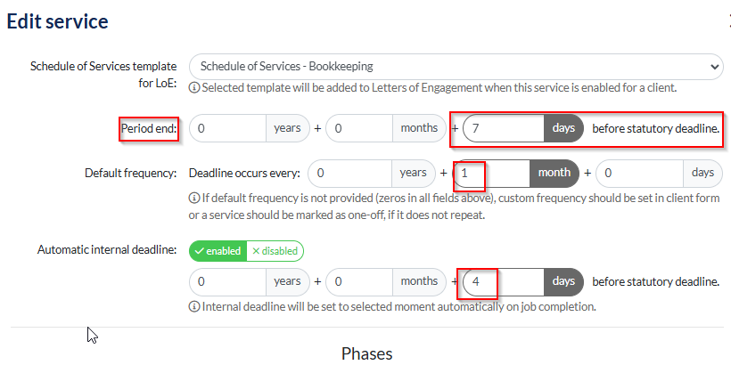 We would also consider having separate services for 'weekly' and 'monthly' bookkeeping to help you stay on top of delivery these services to your client.