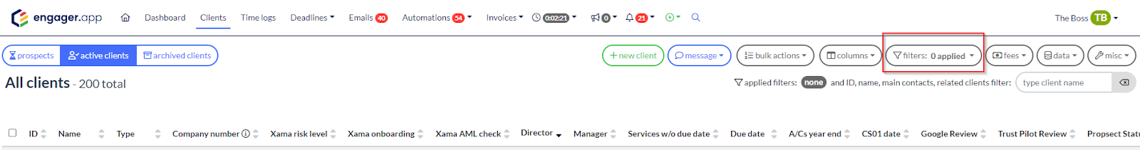 - Navigate to your Client List and select Filters.
