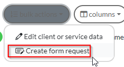 - Click Bulk Actions in the top-right corner and choose Create Form Request.