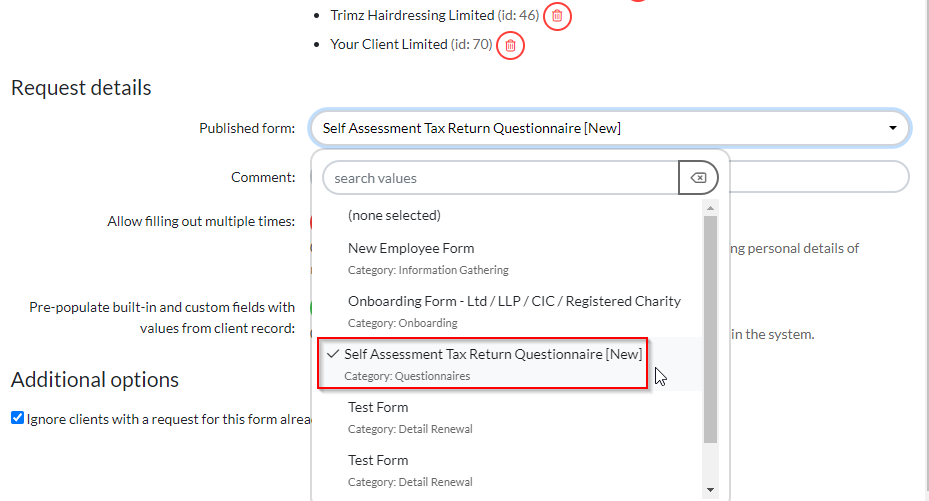 Once your Self Assessment Form is ready, you can send it to clients in two ways: