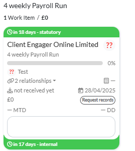 You can now see that my new Job is on my board, with the Statutory deadline at the top, and an Internal Deadline at the bottom