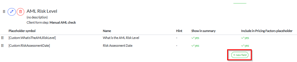 We need to find a home for our new fields, so as this is based on AML and ID, we’ll use ‘AML’ and we’re going to select ‘new field’