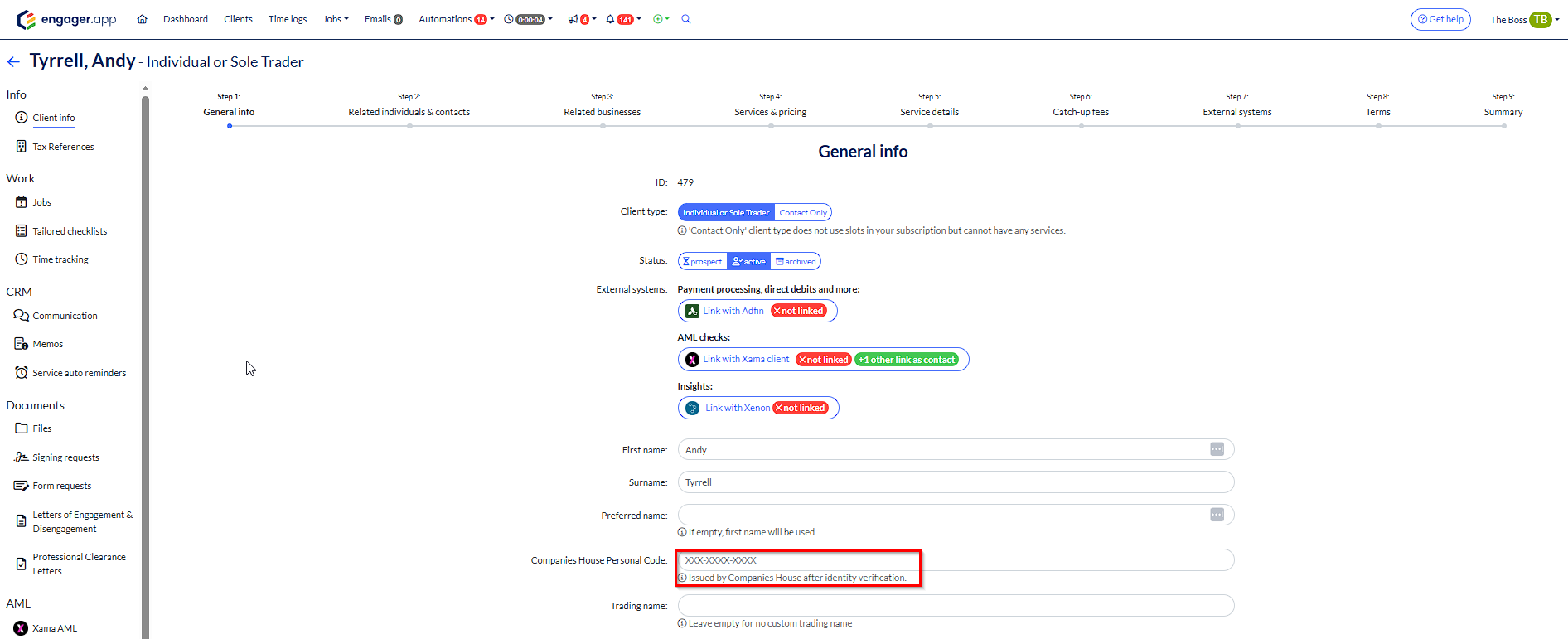 For those of you using Xama, this will be a very straightforward process as you’ll already have the relevant ID documentation sitting on the client profile. It’s then simply a case of working through Xama clients and updating Companies House, once you’ve been registered, then updating Engager to say Companies House ID Verified - ‘Completed’