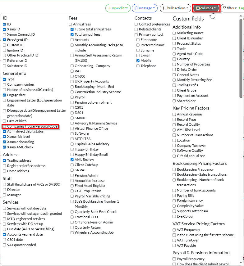 - Navigate down to the new field ‘Companies House Personal Code’