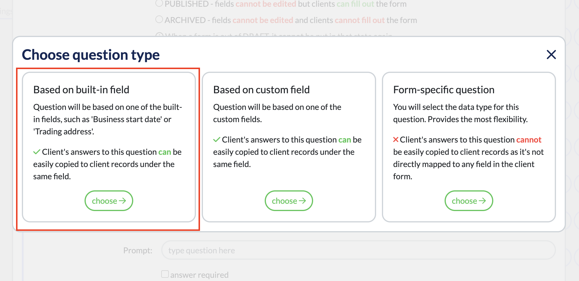 (You’ll find this under “Based on built-in field” when selecting the question type).Update the prompt/question wording to something helpful like: