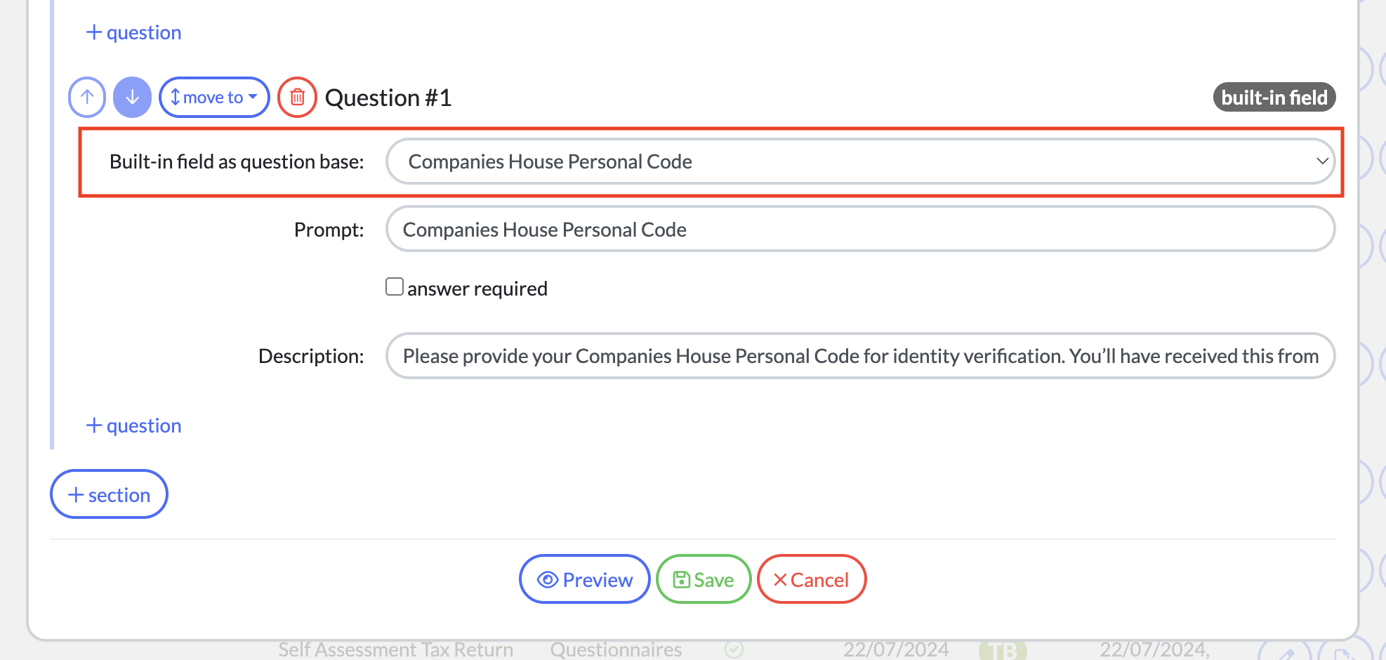 “Please provide your Companies House Personal Code for identity verification. You’ll have received this from Companies House.”Save and publish the form.