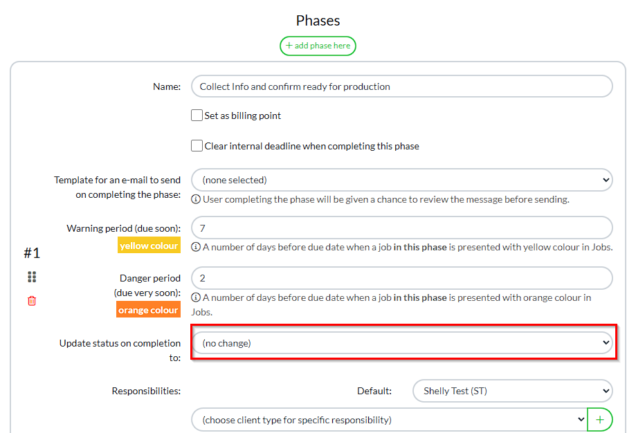 Now scroll down to Phases. You'll see that there's a new option under actions 'update status on completion to'