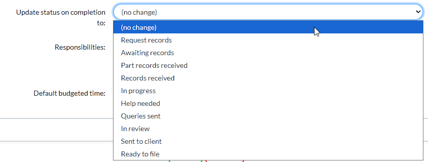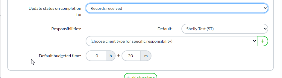 In this example, we're completing a Phase that is confirming we've received the bank statements / assets and that the Year End accounts can now be started. So I'm going to use 'records received'