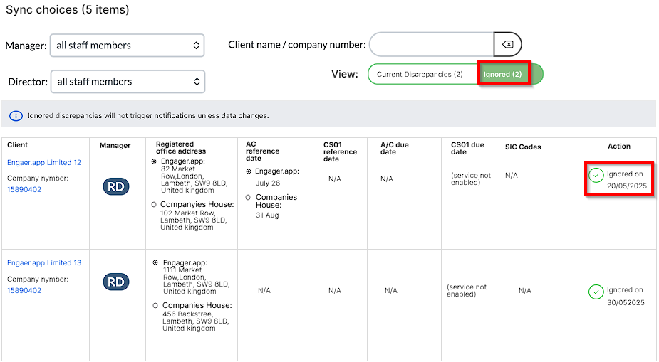 To help prevent this, we’ve introduced the option to ignore address updates from Companies House. This allows you to keep your Engager address unchanged and maintain consistency with your other connected systems, avoiding ongoing mismatch loops.